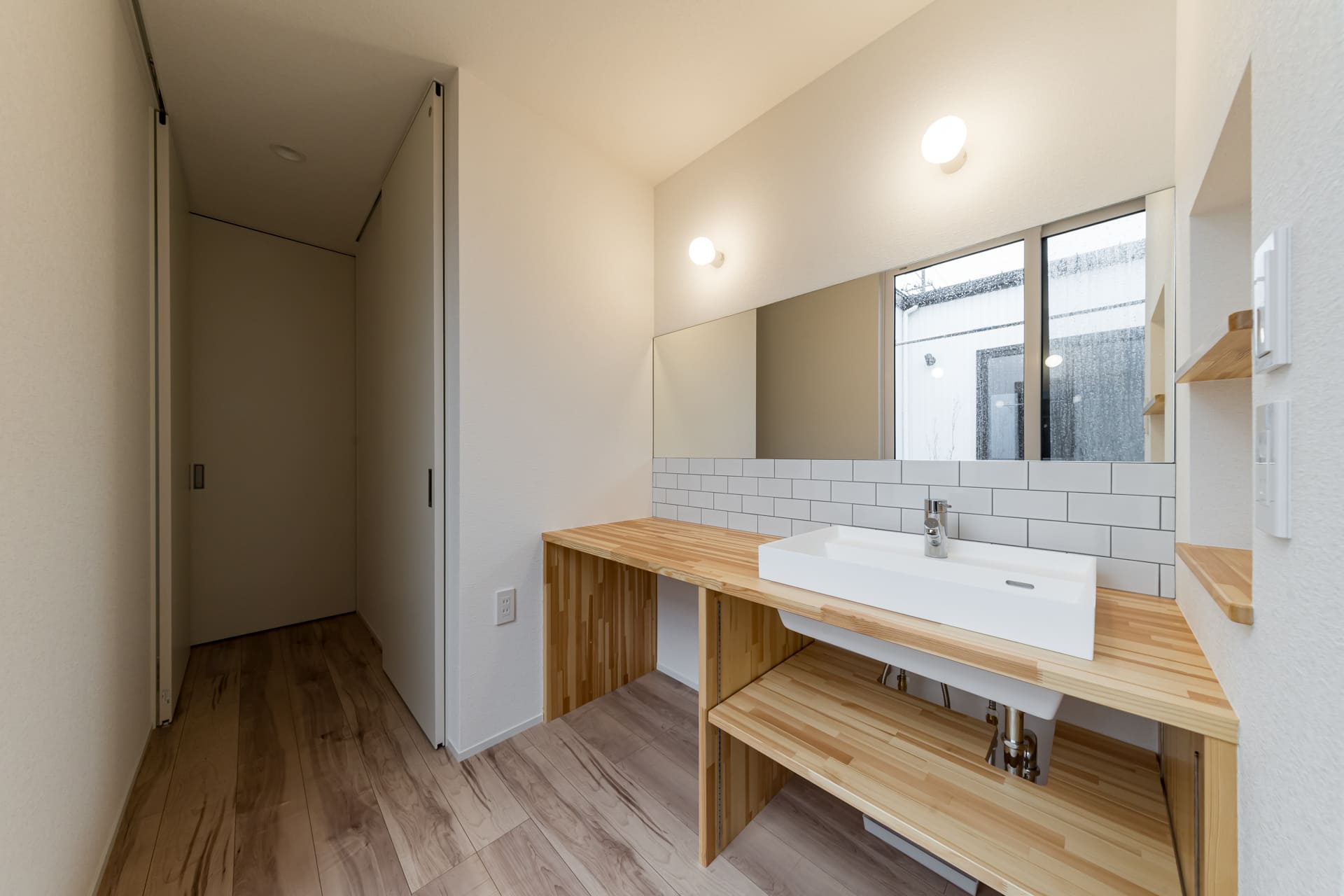 空間にピッタリと合うように設計されたオリジナル造作洗面台。