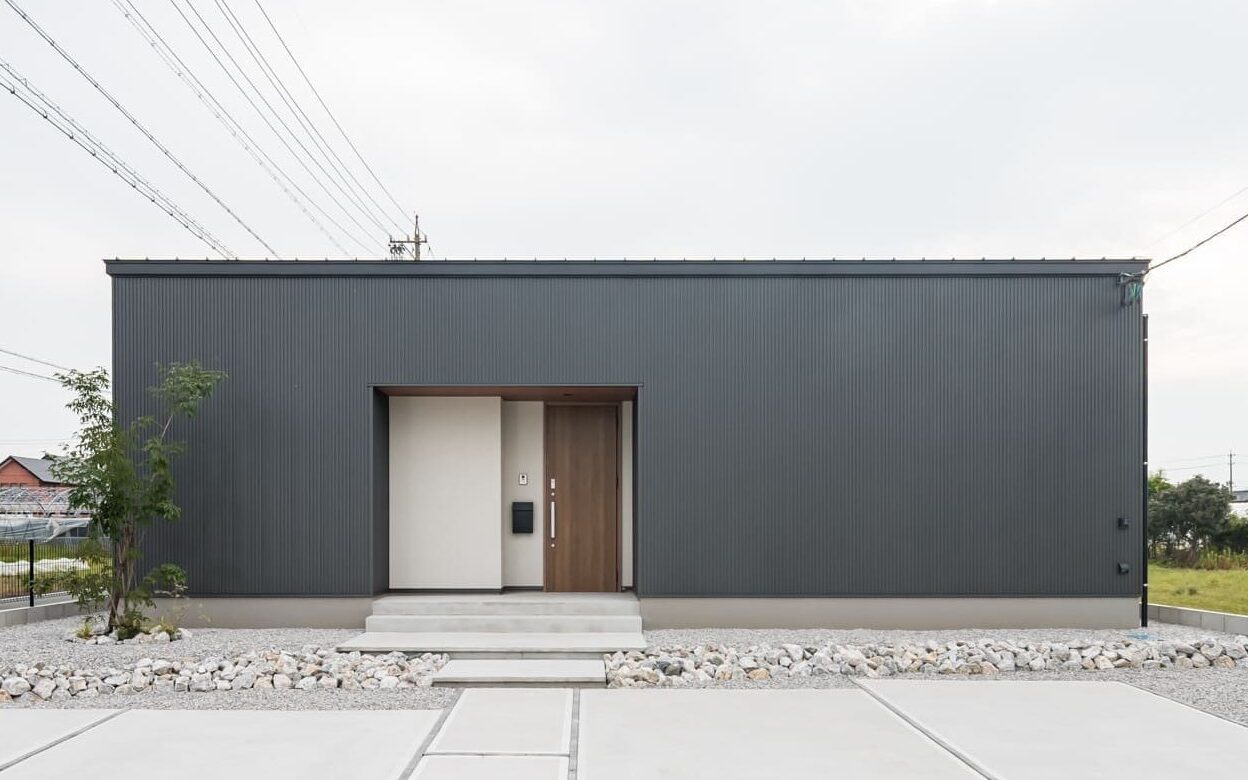 シックで落ち着きのある外観、平屋でシンプルな佇まい。
